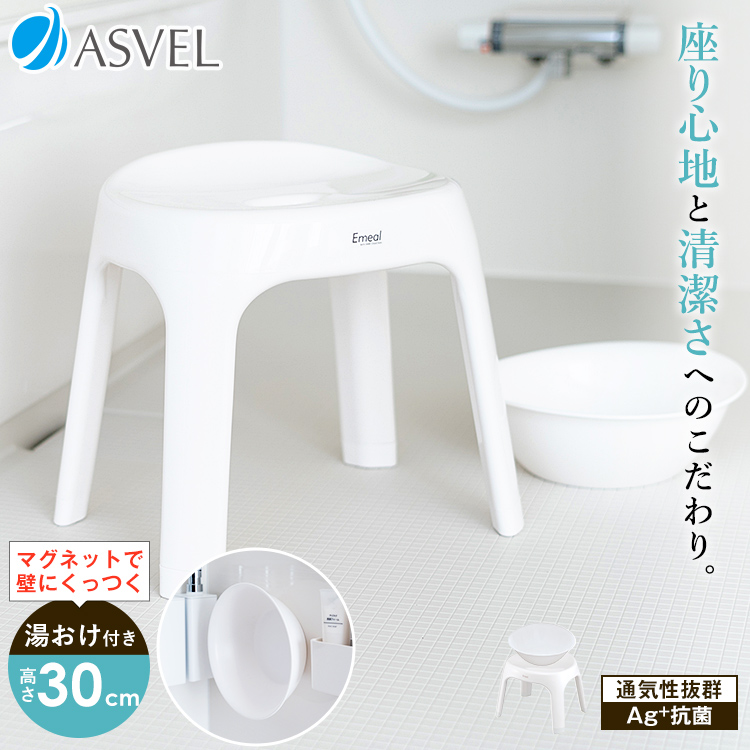 風呂椅子 おしゃれ エミール S 30cm マグネット湯桶 セット アスベル EMEAL バスチェア 風呂いす お風呂 イス 抗菌 高め 洗いやすい カビにくい