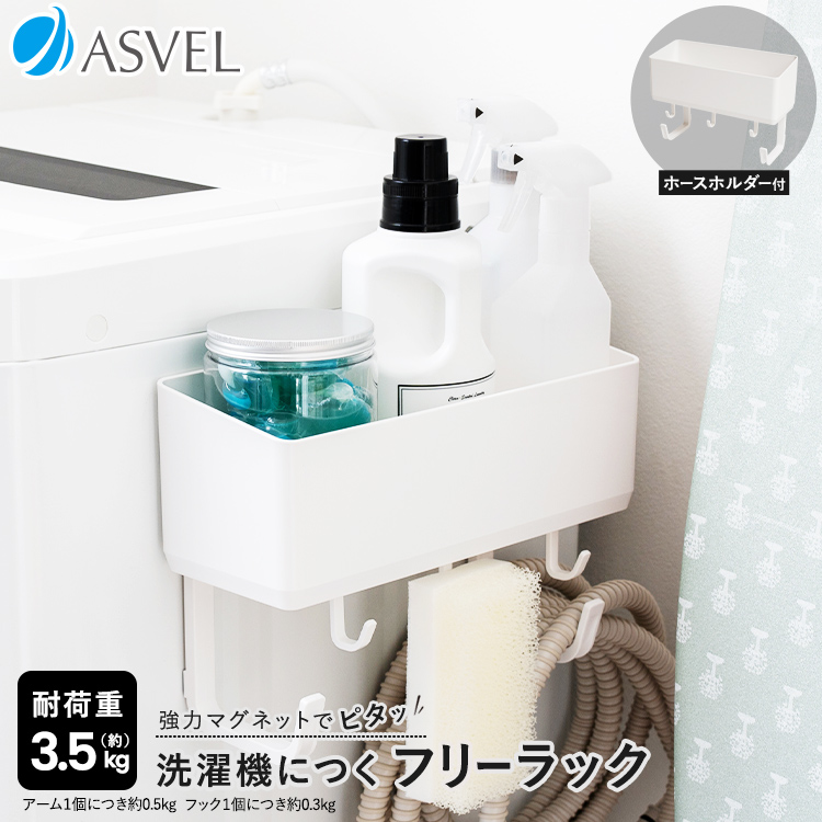 収納 浮かせる収納 洗面所 洗濯機取付 マグネット 収納ラック フリーラック 給水ホース収納 アスベル ラックスMG 洗濯機収納 洗剤ラック 大容量