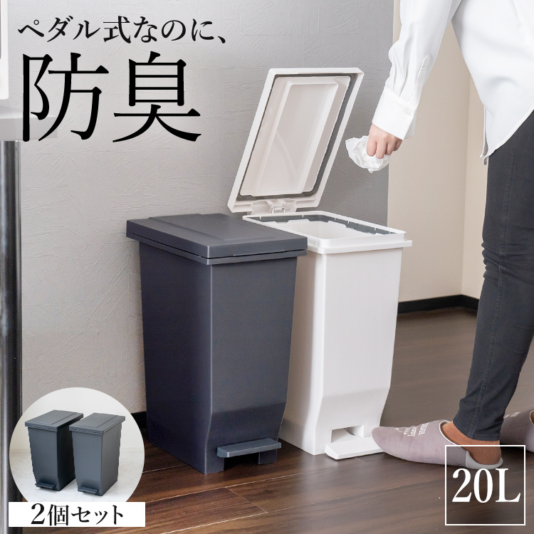 手を使わず、足で開閉できるペダルペール。臭いもれを防ぐパッキン付きで生ごみを捨てても安心です。ホワイト・ブラックを組み合わせれば、分別にも最適。ゴミ袋をセットできる袋止め付き。キッチンにぴったりのスリムサイズ(20リットル )のお得な2個セットです。
