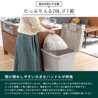屋内屋外問わず活躍するゴミ箱 SPハンドル付ダストボックス 70リットル 。開け閉めしやすい大きなハンドルが特徴です。倒しても中身がこぼれないロック付きなので、犬猫対策、カラス対策や小さなお子様のいたずら対策に最適。袋止め付きで、市販の70リットル のゴミ袋が使えます。フタは開いた状態で固定できるので、ゴミ袋交換もラクラク。大容量なので、ベランダやお庭などでの収集日までの一時保管にも向いています。フタのカラーを組み合わせれば、ペットボトルや空き缶などの資源ごみの分別にも最適。シンプルデザインとおしゃれなカラーで、ファミリーからカフェなどの店舗・オフィスまで使える45リットル ・70リットル ・90リットル の4サイズ展開。