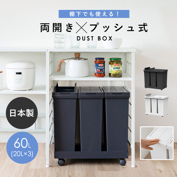 ゴミ箱 20L / ゴミ箱 60L / おしゃれ / プッシュ式 / 両開き / 日本製 / キッチン用ゴミ箱 / 棚下ゴミ箱 / 分別用 / スリム / フタ付き / キャスター付き / シンプルデザイン
