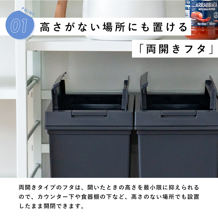 【両開き×プッシュ式で、狭い場所でも使いやすい!おしゃれで快適な日本製ダストボックス60L】