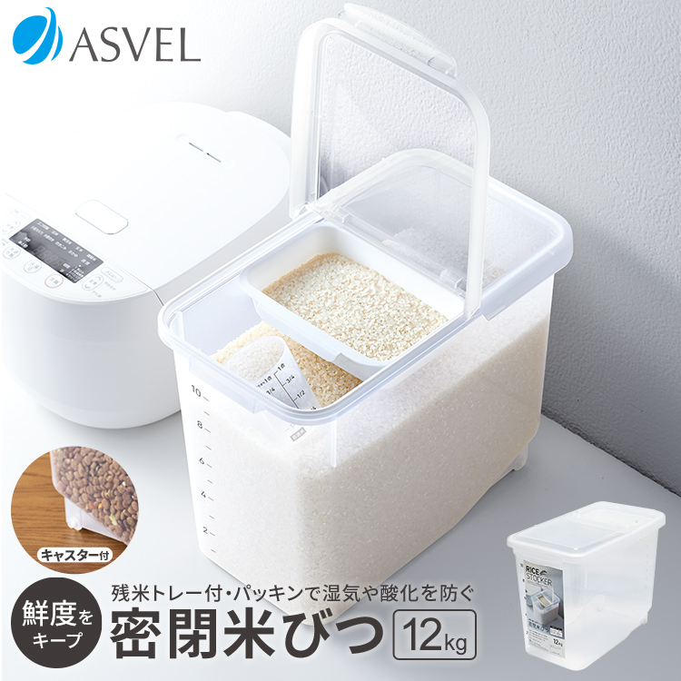 米びつ 密閉 12kg アスベル 保存 ライスストッカー ライスボックス 10kg 無洗米 保存容器 ペットフード入れ ペットフード容器 キッチン収納 おしゃれ