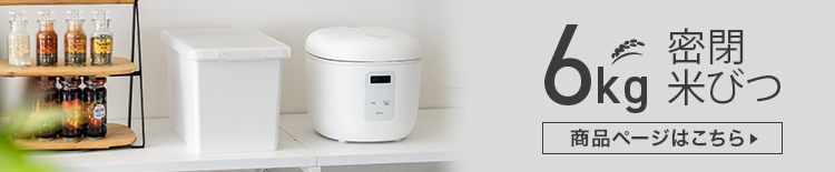 お米の保存に便利な密閉米びつ。パッキン付きで完全密閉だから、お米の酸化を防ぎ、美味しさを保ちながら保存できます。計量に便利な計量カップ付き。無洗米にも対応しています。