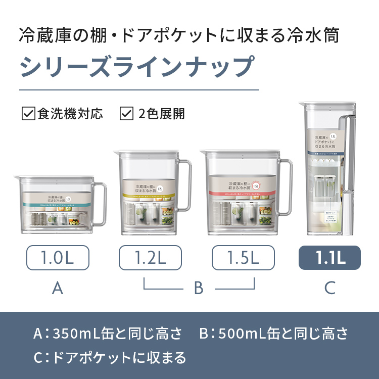 冷蔵庫 のドアポケット に 収まる 冷水筒 SP111 アスベル 食洗機 耐熱 1.1リットル 1.1L おしゃれ 洗いやすい プラスチック 水差し 麦茶ポット ピッチャー