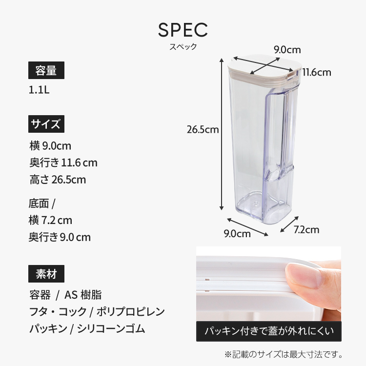 材質 : 本体=AS フタ・栓=ポリプロピレン フタパッキン=シリコンゴム