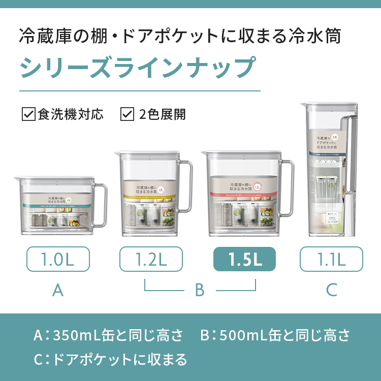 冷蔵庫 の棚 に 収まる 冷水筒 SP151 アスベル 食洗機 耐熱 1.5リットル 1.5L おしゃれ 洗いやすい プラスチック 水差し 麦茶ポット ピッチャー ギフト