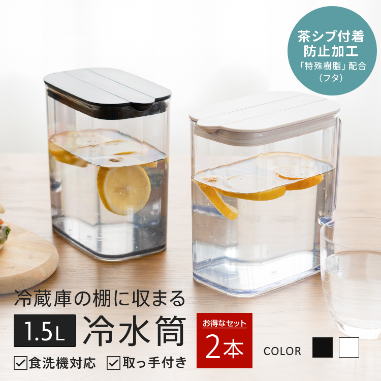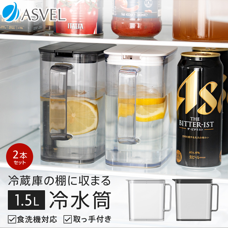 冷蔵庫 の棚 に 収まる 冷水筒 SP151 2本セット アスベル 食洗機 耐熱 1.5リットル 1.5L おしゃれ 洗いやすい プラスチック 水差し 麦茶ポット ピッチャー