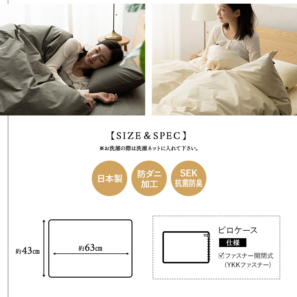 ピロケース:ファスナー開閉式(YKKファスナー)