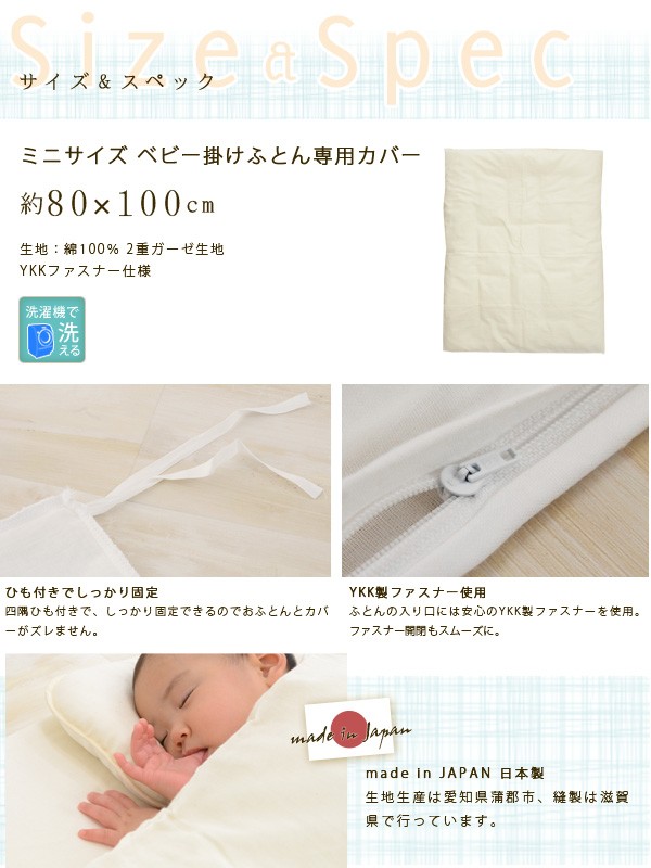 ミニサイズ ベビー 掛け布団カバー 日本製 無添加コットン 2重ガーゼ 掛けふとんカバー 80×100cm 掛けカバー 掛ふとんカバー