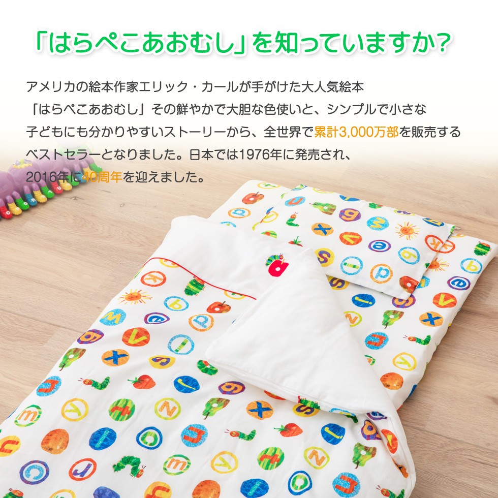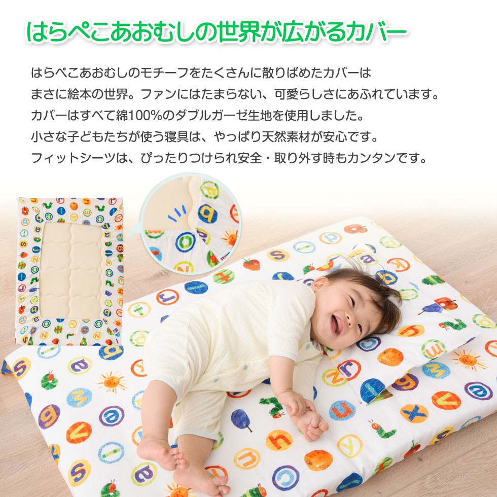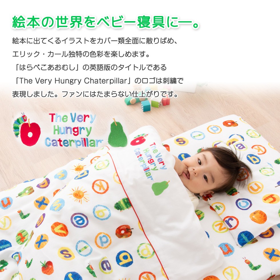 はらぺこあおむしの世界が広がるカバーカバーはすべて綿100%のダブルガーゼ生地を使用しました。