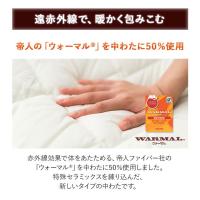 遠赤外線だから暖かい。ウォーマル(R)は体から出る遠赤外線をすばらしく吸収し、再放出するため暖かさが体を包み込みます。 この中わたを全体の約50%使用しました。 遠赤外線を活用している機能なので、暖かいと言っても蒸れずにさらっと快適です。 冬用と言わず、夏以外の3シーズンお使いいただけるベーシックでリーズナブルな掛け布団です。