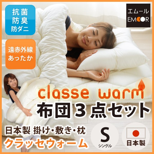 日本製 布団セット シングルサイズ クラッセウォーム 赤外線効果で冬もあったか 掛け布団 敷き布団 枕の3点セット