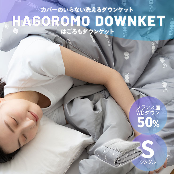 はごろもダウンケットには、フランス産ホワイトダックダウンを50%(約250g)充填。
