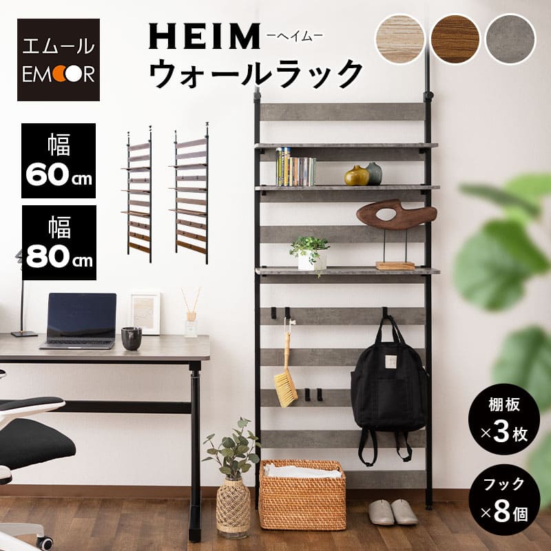 ウォールラック 壁面ラック 収納ラック ディスプレイラック オープンラック ラック ウォールシェルフ 壁掛けシェルフ オープンシェルフ シェルフ 壁掛け飾り棚 飾り棚 壁面収納棚 壁掛け棚 収納棚 本棚 収納 棚 壁面収納 背面収納 壁掛け 壁付け 壁寄せ 壁 ウォール 取り付け ボックス 間仕切り 仕切り 収納家具 見せる収納 魅せる収納 ディスプレイ 壁に付けられる家具 インテリア HEIM ヘイム 幅80cm 幅80 幅60cm 幅60 木製 スリム 薄型 省スペース 突っ張り つっぱり 賃貸 オフィス 玄関 リビング キッチン 洗面所 トイレ 在宅 テレワーク リモートワーク ホワイト 白 ブラック 黒 グレー セラミック調 北欧 シンプル ナチュラル スタイリッシュ モダン ヴィンテージ おしゃれ 新生活 一人暮らし ギフト プレゼント 贈り物 祝い 送料無料 エムール