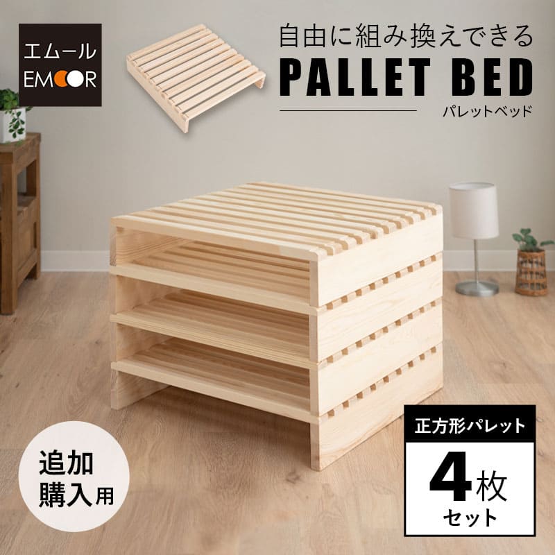 パレットベッド パレットベット ジョイントパレット 木製パレット 追加パレット 拡張パレット 追加パーツ 拡張パーツ パレット パーツ すのこベッド スノコベッド すのこベット スノコベット ベッドフレーム ローベッド フロアベッド シングルベッド ダブルベッド キングベッド ファミリーベッド 連結ベッド 簡易ベッド すのこ スノコ ベッド ベット フレーム マット 布団 ベンチ テーブル インテリア 家具 PALLET BED 4枚セット 4枚 正方形 追加購入用 追加用 拡張用 連結パーツ付き 連結 ジョイント式 ジョイント ヘッドレス 組み換え アレンジ レイアウト シングル セミダブル ダブル クイーン キング ファミリー サイズ 木製 天然木 無垢材 パイン材 無塗装 DIY 軽量 軽い スリム コンパクト 省スペース 収納 梅雨 夏 オールシーズン 通年 湿気対策 カビ対策 通気性 湿気 雨 汗 蒸れ カビ 除湿 快適 快眠 安眠 北欧 シンプル ナチュラル モダン おしゃれ かわいい 新生活 一人暮らし ギフト プレゼント 入学 卒業 就職 引っ越し 祝い 贈り物 送料無料 エムール