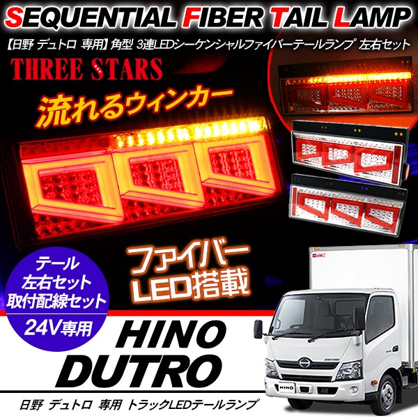 デュトロ シーケンシャル ファイバー LED テールランプ 左右セット 専用配線 3連 角型 車検対応 Eマーク取得済 保証付 流れる テール トラック用品 外装パーツ