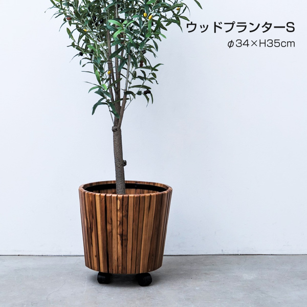 [ 送料無料 ] ウッドプランター S φ34 木製 キャスター付き ガーデニング 天然木 木製プランター 円形 鉢 植木鉢 グリーンポット 北欧風 プランター おしゃれ インテリア
