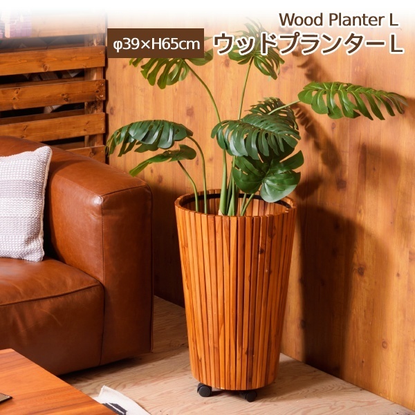 ウッドプランター L 木製 キャスター付き ガーデニング 天然木 円形 鉢 植木鉢 おしゃれ インテリア 観葉植物 軽量 AZSP 天然木ウッドプランター【単品】
