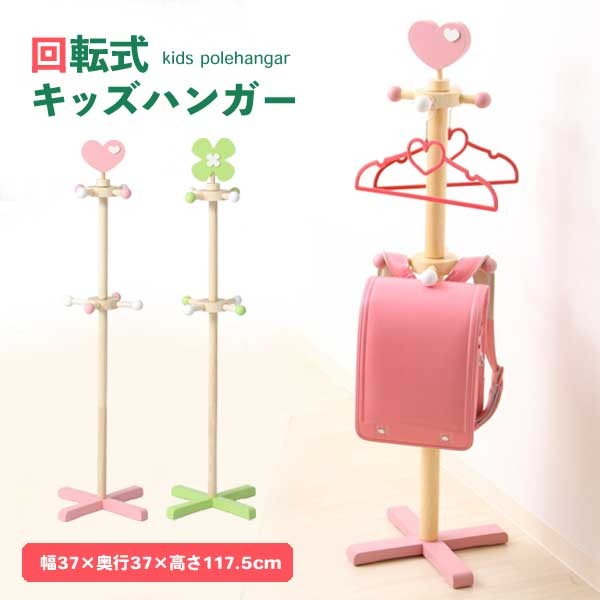 選べる2タイプ 天然木 キッズポールハンガー ランドセルラック 回転ポール ポールハンガー ウッド ハート クローバー おしゃれ 可愛い こども 省スペース