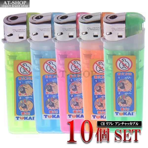 使い捨てライター 東海ライター リフレ アンチャッカブル 2段階式チャイルドロック 電子ライター シンプル おしゃれ (お得まとめ買い 10個セット) ※色選択不可