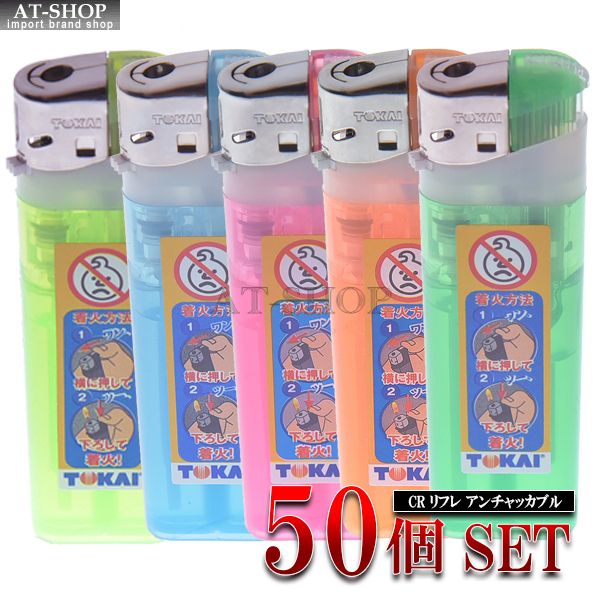 使い捨てライター 東海ライター リフレ アンチャッカブル 2段階式チャイルドロック 電子ライター シンプル おしゃれ (お得まとめ買い 50個セット) ※色選択不可