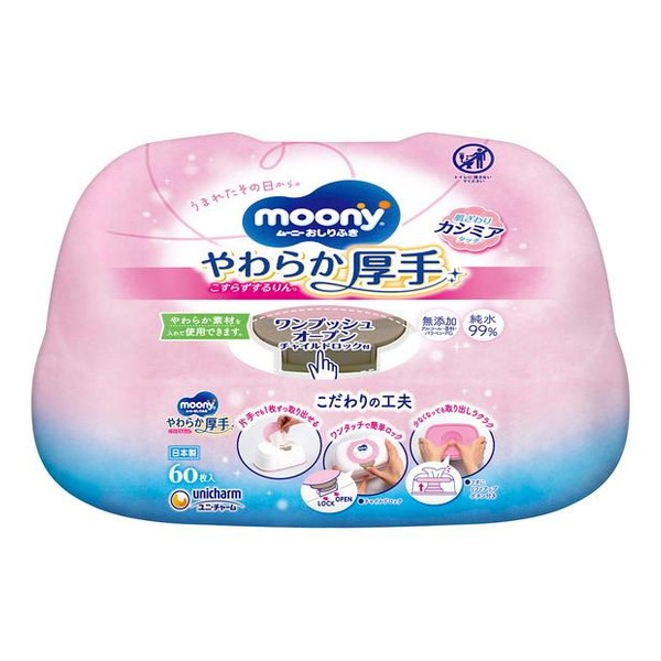 商品名:ユニ・チャーム ムーニー おしりふき やわらか厚手 本体 60枚 ワンプッシュオープン