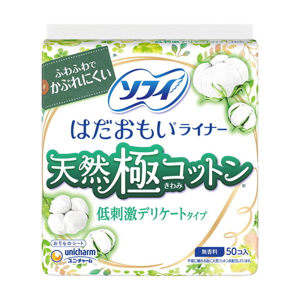 商品名:ユニ・チャーム ソフィ はだおもい ライナー 天然 極 コットン 低刺激 デリケートタイプ 50枚入