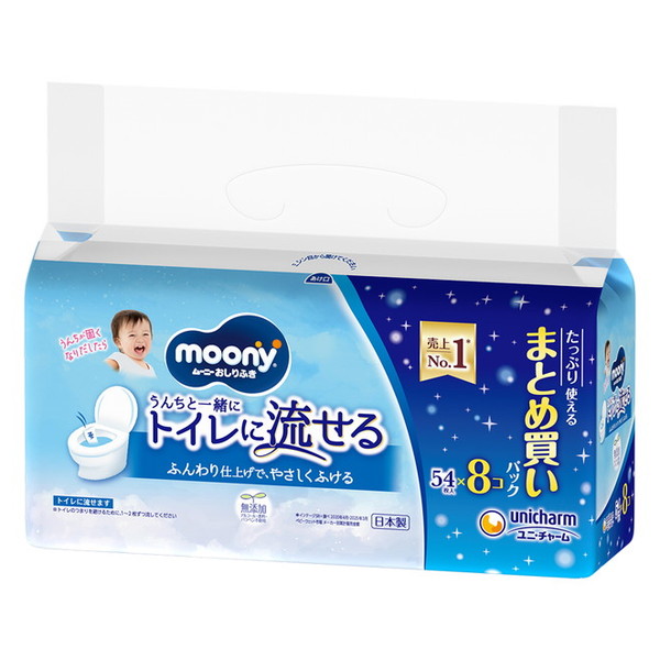 商品名:ユニ・チャーム ムーニー おしりふき トイレに流せるタイプ 詰替 54枚×8コ