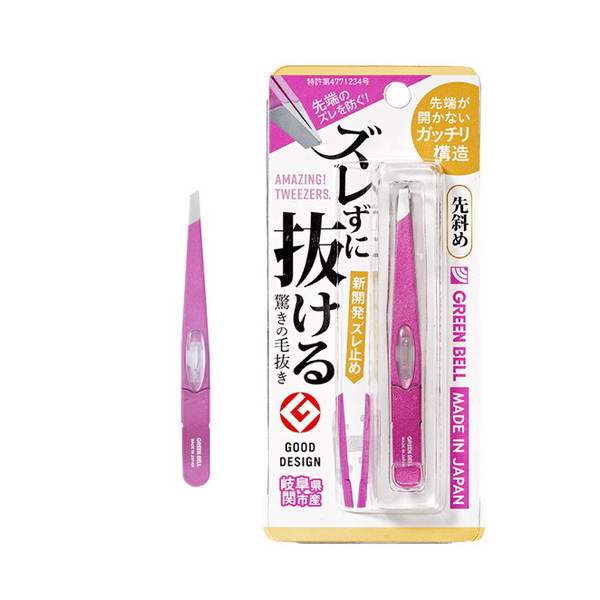 商品名:グリーンベル GT-235 ズレずに抜ける驚きの毛抜 先斜めシャイニーピンク 毛抜き