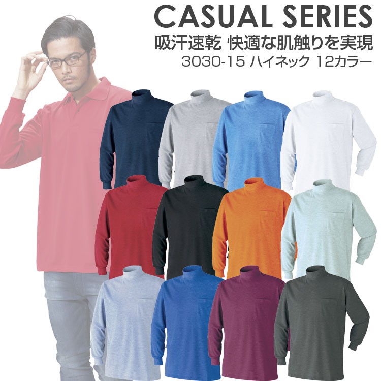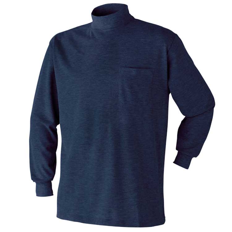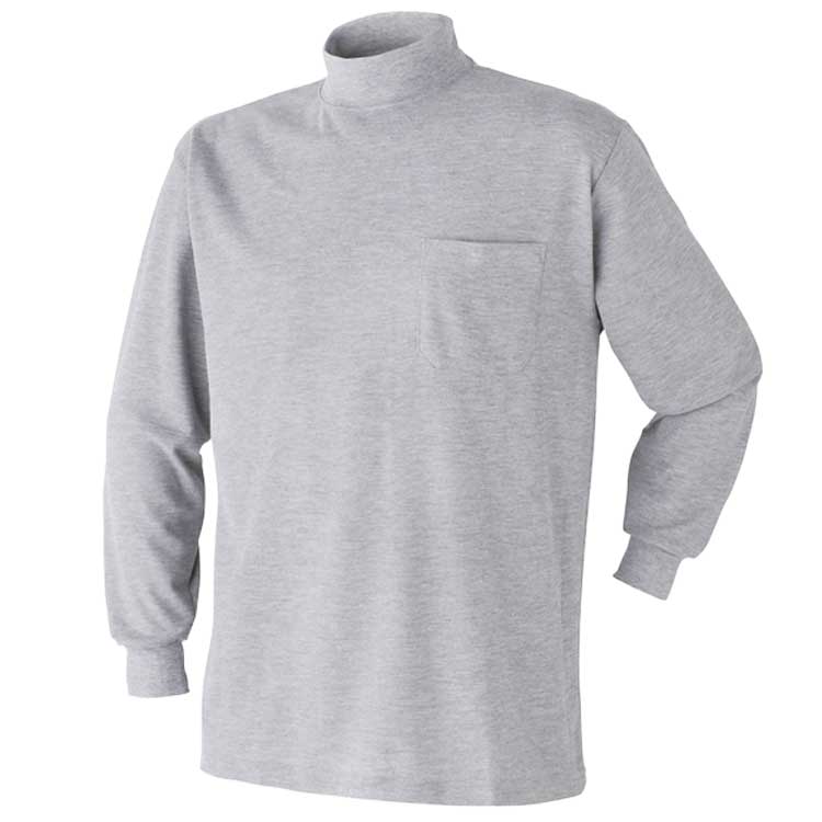 ハイネック メンズ 長袖 作業服 作業着 Tシャツ 春 夏 秋 冬 3L 4L 5L 胸ポケット 無地 大きいサイズ 3030-15 鹿の子 安い 黒 白 オールシーズン アタックベース