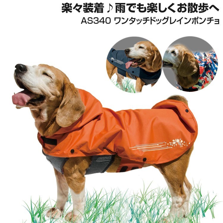 【在庫限り】 犬服 レインコート 小型犬 撥水 防水 紺色 ネイビー マジックテープ フリース リード通し穴 雨具 ペット服 ドッグウェア ポンチョ Makku 340-45