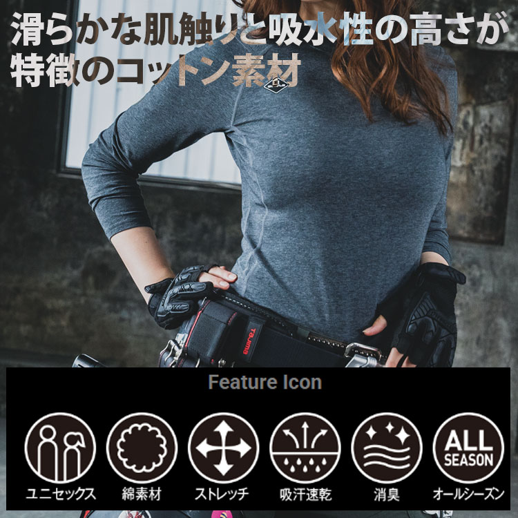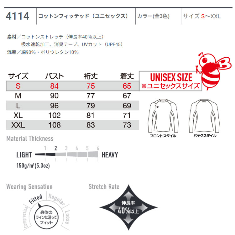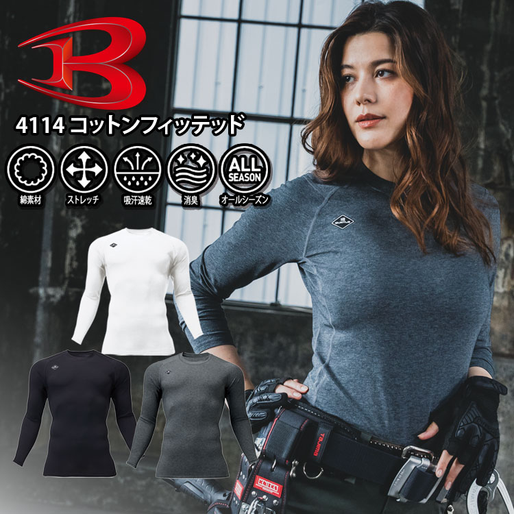 バートル 4114 インナー メンズ 綿混 コットン フィッテッド 作業服 長袖 ストレッチ 消臭 吸汗速乾 UVカット オールシーズン 作業着 コンプレッション BURTLE