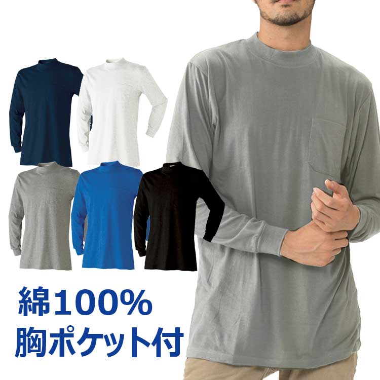 作業服 作業着 Tシャツ メンズ 綿100% 長袖 シャツ ローネック 春 夏 秋 冬 大きいサイズ 3L 4L 5L 胸ポケット 通年 無地 7070-15 紺 黒 白 青 アタックベース