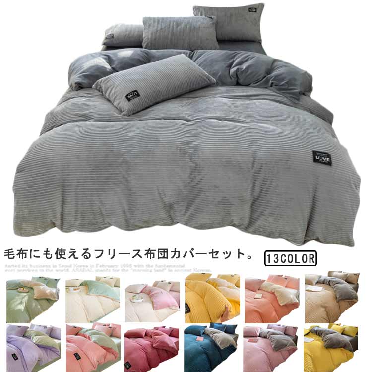 | 毛布にも使えるフリース布団カバーセット。 保温性&吸湿性に優れた極細繊維を使用し、柔らかくしなやかな風合いは肌が喜ぶ寝心地です。 とこけるような極上の肌触りと、くほどのなめらかさ。高密度の極細維が空気をため込むため、ふんわり暖かく包みこまれるような心地よさです。寒い冬もかく快適な睡眠を届けてくれます。 片側にファスナー使用 - ファスナーは端まで開くので、布団の出し入れがやすくなっています。 ご家庭で洗うことができますから清潔で安心。これはとっても便利! | |