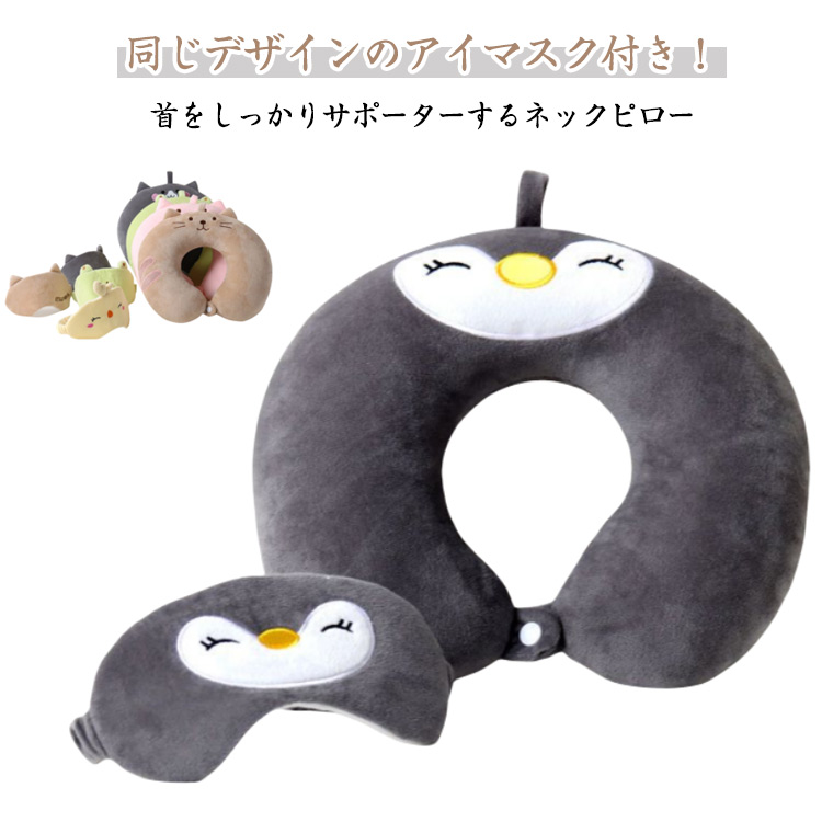 | 同じデザインのアイマスク付き!首をしっかりサポーターするネックピロー 表面はレーヨン生地、本体は形状記憶フォームを採用しました。 肌触りがよく、快適に首周りをサポートします。 首を支える形状になっているので、首が左右に揺れたり、前後に動くのを防ぎます。 首や肩の負担を軽減し、安定した姿勢を保つことができます。 同じデザインのアイマスク付き。可愛いデザインでプレゼントとして最適♪ | |
