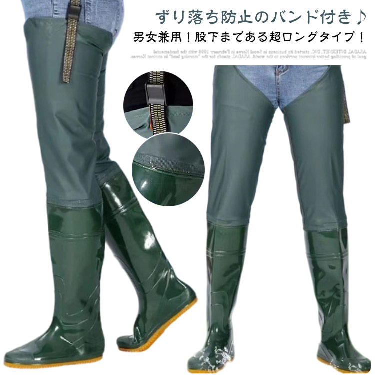 | 男女兼用!股下まである超ロングタイプ!ずり落ち防止のバンド付き♪シンプルな男女兼用デザインのヒップウェーダーです。 ブーツとズボンは縫い合わせるのではなく、一体化でつくられており、水漏れはしません。 安定感が高い深溝ソールで滑りやすい床や水中でも高いグリップ力を実現 ウェーダーとシューズの隙間からの砂等の侵入を防ぐグラベルガードを装備。 太ももまで完全防水なので、太ももまでの水中作業・水跳ねの多い工場作業・漁業作業・農作業・水産にも最適です♪ 田植えなどの農作業はもちろん、渓流釣りや除草除雪などにも◎ | |