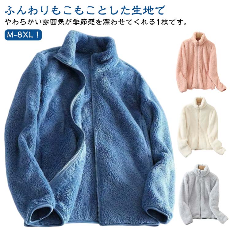 | M-8XL!ふんわりもこもことした生地でやわらかい雰囲気が季節感を漂わせてくれる1枚です。 裏と表は空気を含んであったかフリース素材を使用し、冬の防寒対策もばっちりです。 首元まで暖かいスタンドカラーも嬉しいポイント。 柔らかな肌触りで毛布そのままを着ているような両面ボアフリース素材を使用しております。 お出かけにも部屋着にもマストな一着。 | |