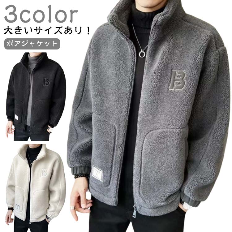 スタンドカラー 裏起毛 厚手 メンズ アウター 秋冬 グレー ボアブルゾン カジュアル おしゃれ ボアコート ベージュ 黒 ボアジャケット ブラック