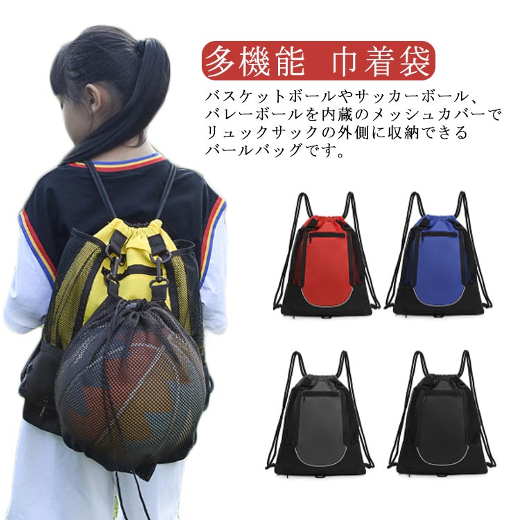 | バスケットボールやサッカーボール、バレーボールを内蔵のメッシュカバーでリュックサックの外側に収納できるバールバッグです。 自転車用のヘルメットやシューズの収納も可能です。 左右にサイドポケットがありますのでペットボトルや水筒、折り畳み傘等を収納できます。 表面には撥水加工を施していますので、小雨程度は問題ありません。 軽量なので小さなお子様も使用いただけます。 反射テープ付きで夜の日も安心できます。 巾着式で取り出しも簡単、スポーツ、キャンプ、部活などのアウトドアのシーンに使えるアイテム。 | |