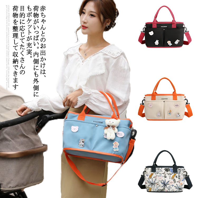 | 赤ちゃんとのお出かけは、荷物がいっぱい。内側にも外側にもポケットが充実。目的に応じてたくさんの荷物を整理して収納できます。 本体は自立するのに軽いポリエステル素材。取り外し可能なショルダーベルト付き。2wayで使用可能です。 内側に保温ポケットが付いているので、温かい飲み物を冷やさず持ち運べて、子育てママをサポートしてくれます。 仕切りの位置を変えられますので、自分の好みに調整しましょう。 多機能ながら、おしゃれで可愛いマザーズバッグに仕上げました。 ★付いているのバッジは取り外し可能。 | |