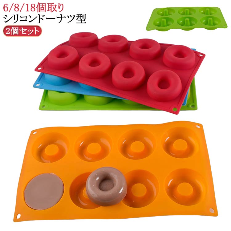 【2個セット】【シリコンドーナツ型】【6/8/18個取り】