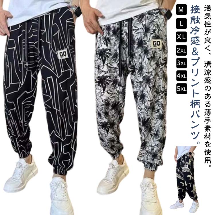 | M-5XL!接触冷感&プリント柄パンツ。 通気性が良く、清涼感のある薄手素材を使用。 ウエストはゴムになっているので ストレスフリーな着心地。 裾もゴム仕様で、足元をすっきりと見せ。 プリント柄アイスシルクパンツ 通気でお肌に優しい、快適で型崩れない、着痩せ効果。色あせない、シワに強い、また通気性が高く、強い吸水性・速乾性を持ち、常に体をドライな状態に保ち、快適な穿き心地を実現しています。 | |