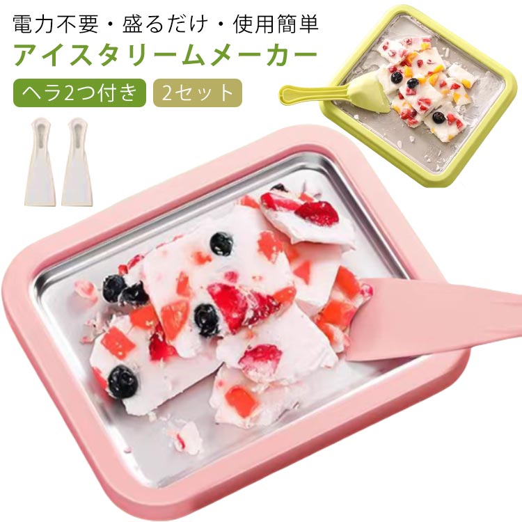 | 電力不要・盛るだけ・使用簡単 アイスタリームメーカー ヘラ2つ付き 【2セット】 大人気のフルーツデザートマシン。オールシーズン、いつでも手軽にクリーミーな新食感のヘルシーデザートをつくれます。 アイスメーカーを冷凍庫に6時間。凍った天板の上にお気に入りの市販のジュースを投入〜!付属のヘラで混ぜたらアイスの出来上がり 電源や電池不要でカンタンに。おうちでアイスが完成!! <お勧めポイント> 【信頼できる素材】 アイスクリームロールトレイは食品グレードのステンレス鋼で作られ、スクレーパーは食品グレードのPP素材で作られており、安全で耐久性があり、環境に優しいです。 【楽しくて楽しい】 火や刃物を使わないので、お子様にも安心安全。家族みんなでスイーツアイスパーティーを楽しもう♪ アイスクリーム作りのトレイは、お子様が遊ぶのに最適なフライパンです。さまざまな種類のアイスクリームを味わうことができ、子供たちに喜びをもたらし、素晴らしい夏を過ごすことができます。 【操作が簡単】 混合した材料を冷凍パンに注ぎ、アイスクリームが形成されるまで待って回転させ、スパチュラを使用して美しいアイスクリームロールを作成し、操作が簡単です。 【夏のギフト】 この男の子と女の子向けのアイスクリーム作りキットは、誕生日、夏、その他のお祭りのギフトに最適で、子供たちに楽しい体験をもたらします。 【多用途】 アイスクリーム作りキットは、アイスクリーム、アイスクリームロール、乳製品を含まない代替品、フローズンヨーグルト、便利で実用的な作りに広く使用されています。 【お手入れ簡単】 丸洗いOK!食洗機にも対応していてお手入れ簡単!! 出来上がったら、お皿やカップなどの容器に移さず、そのまま食べられます。 | |