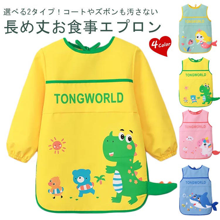 | 選べる2タイプ!コートやズボンも汚さない長め丈お食事エプロン 座っても太ももがカバーできる長めの丈感、お食事の時、食べこぼしによるズボンの汚れ心配もなし◎ ゆったりと着られるからコートの上にも着用できるのが嬉しいです。 防水加工で汚れや水からお洋服をしっかりガード。汚れてもサッと一拭きで取れるから、いつでも清潔で◎ 袖付きなので、汚しやすい袖部分を手首までカバーしてくれるから、お絵かきや粘土遊びなど時も使えてとっても便利です。 小学生まで使える大きいサイズ展開、子供が大好きな可愛い動物柄を揃っています。 選べる長袖/袖なしの2タイプ、ニーズに合わせてお選びいただけるのもうれしい♪ | |