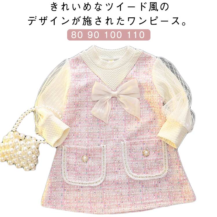| 【80 90 100 110】 きれいめなツイード風のデザインが施されたワンピース。 エレガントでスタイリッシュなデザイン。 入園式、お誕生日パーティー、結婚式、七五三など、さまざまなフォーマルな場面でのご使用に最適です。 また、普段のお出かけにもおしゃれを楽しむことができるため、多用途に活躍するアイテムです。 | |