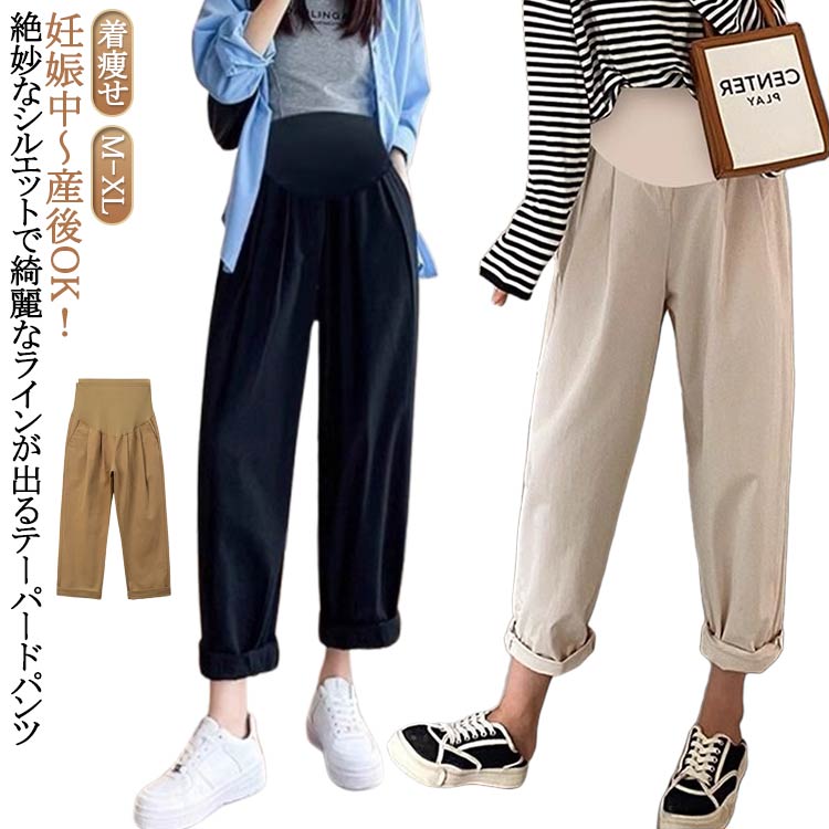 | 妊娠中〜産後OK! 絶妙なシルエットで綺麗なラインが出るテーパードパンツ 楽ちんなのに脚をすっきり細く見せる効果! | |