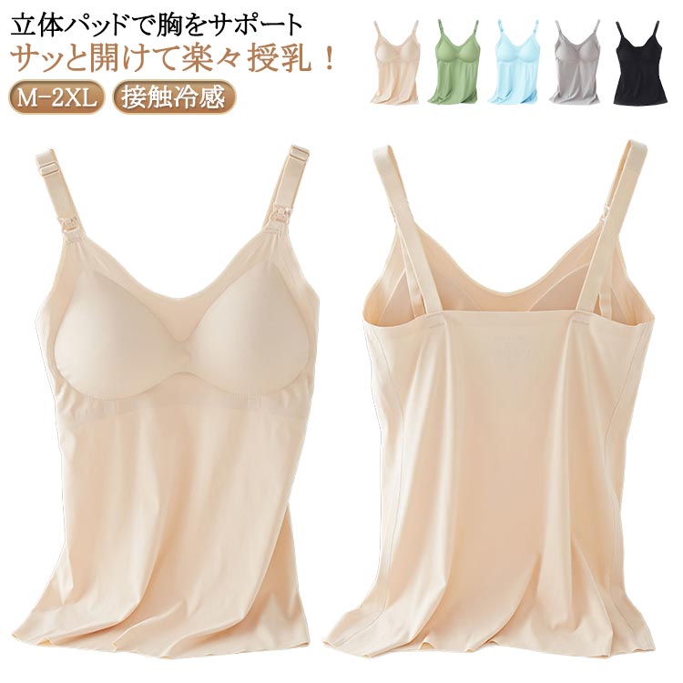 ストレスフリー 授乳キャミソール 涼しい 授乳ブラ 完全母乳 カップ付き 授乳キャミソール シームレス縫製 敏感肌 ひんやり 授乳服 マタニティブラ