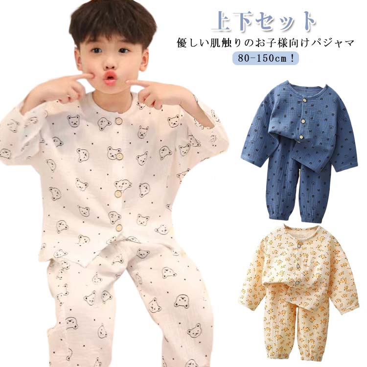 | 80-150cm!綿のダブルガーゼ!優しい肌触りのお子様向けパジャマ ふんわり柔らかいダブルガーゼ生地を使用。 ウエストゴムは調節ができます。 通気性が良くコットンなので、アトピー、敏感肌など肌の弱い方にも。 | |