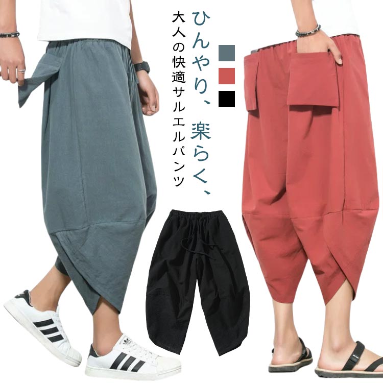 | ひんやり、楽らく、大人の快適サルエルパンツ 軽量で爽やかな季節感のあるリネン混のこだわり素材。 ウエストゴム(紐付き)でノーストレスな楽チンな穿き心地。 股上は深めで穿きやすく股下部分はサルエル仕様で、締め付けないゆったりした着用感が心地良い。 | |
